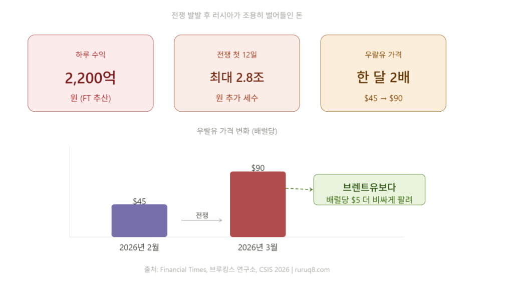 우크라이나 전쟁 자금을 말려버리려던 수년간의 대러 제재 체계. 그것이 미국이 시작한 이란 전쟁 하나로 무력화됐습니다.
